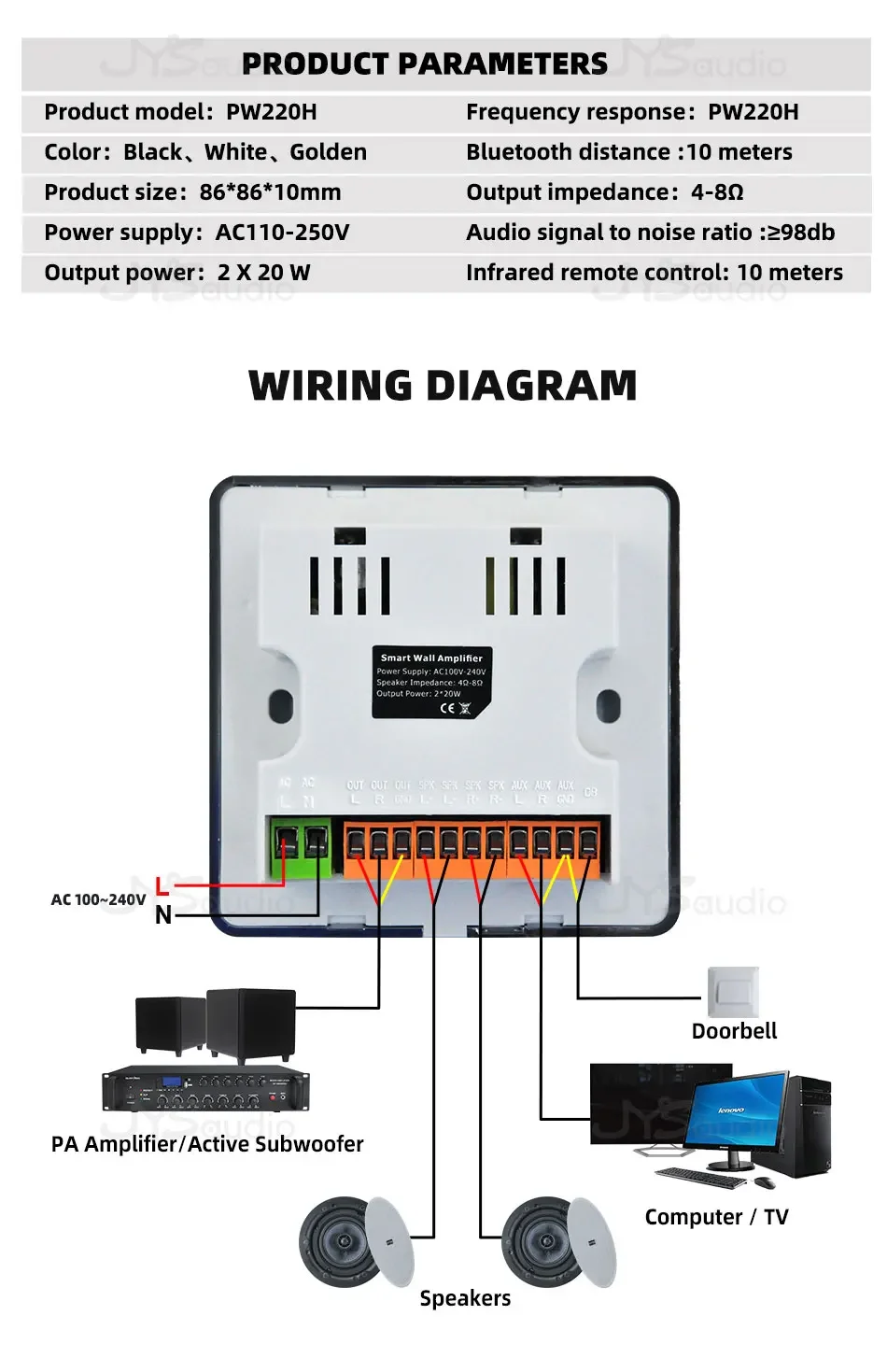 5. USB function: Connect USB (support 32GB) to read music, and easily set up family background music space.